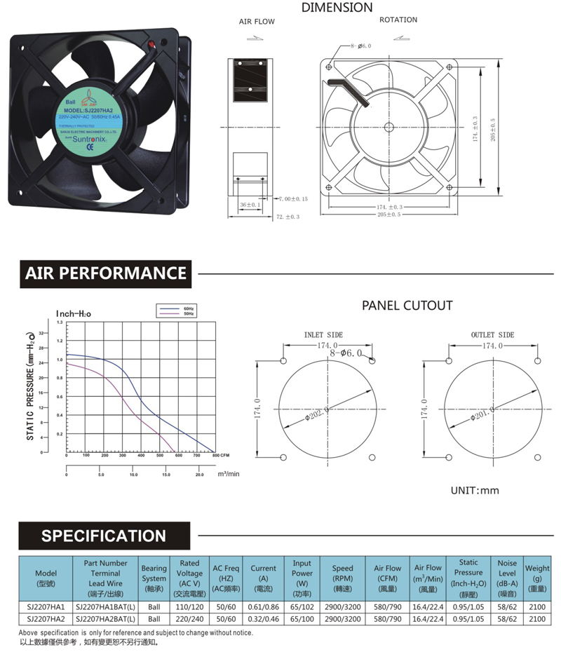 Life:60000 hours at 20 ℃-bearings
